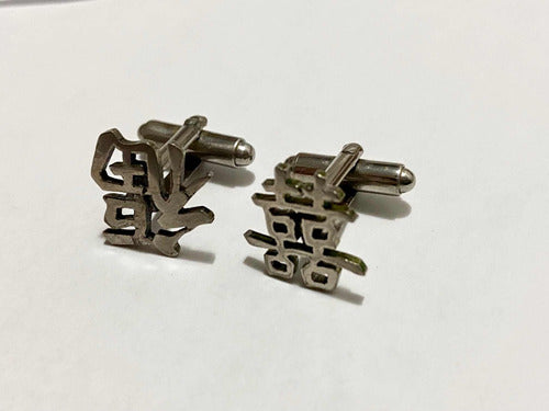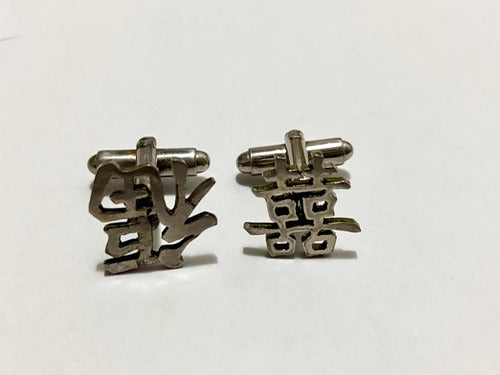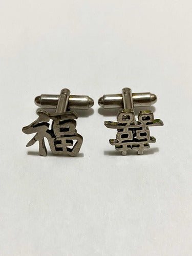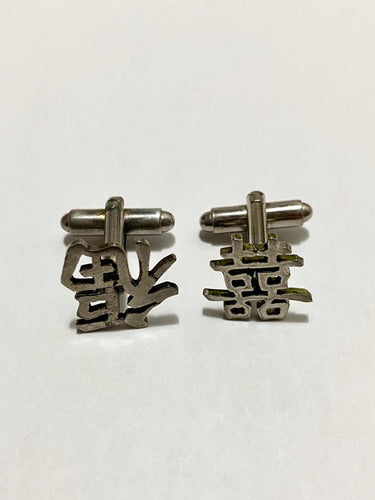 Abotoaduras Antigas Em Prata Com Ideogramas Chineses