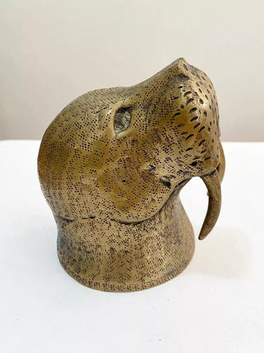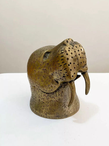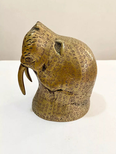 Exótico abridor de garrafa, representando "morsa", em bronze europeu dourado, finamente cinzelo. Med: 9 x 6 cm