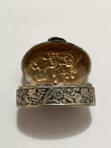 Antiga Caixa De Prata Porta Comprimidos Joias Com Desenhos