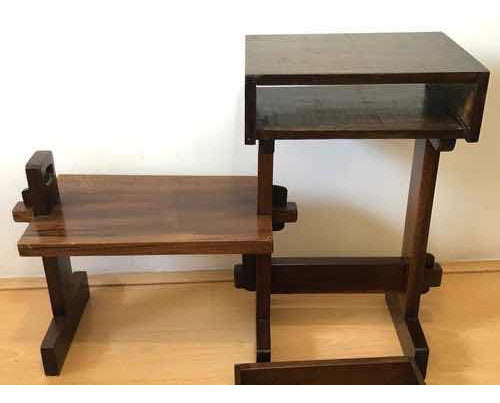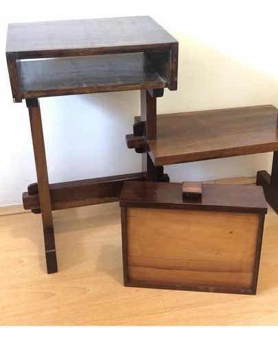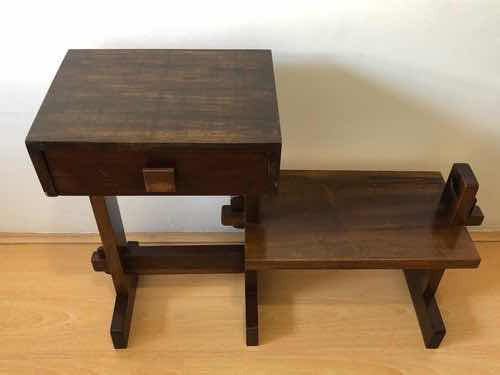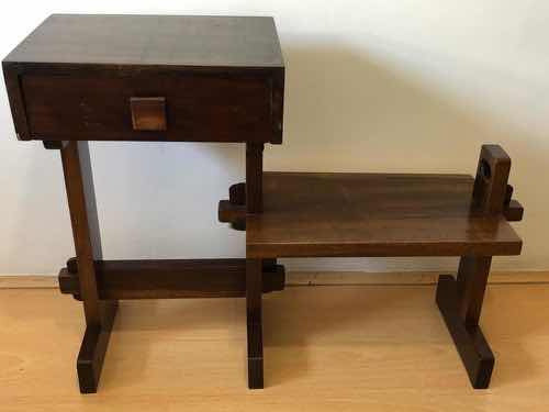 Antiga Mesa De Canto Lateral Madeira Nobre Com Gaveta