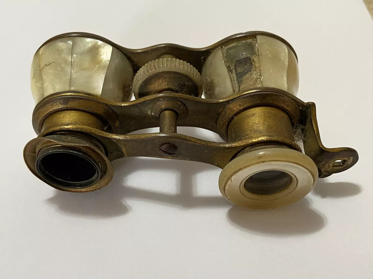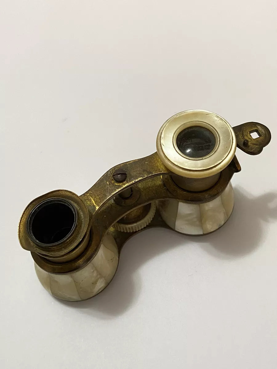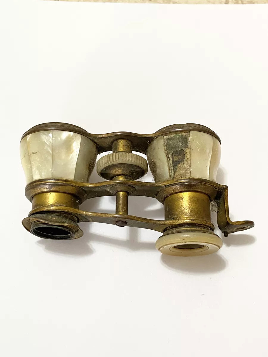 Antigo Binóculo Francês De Opera Teatro Bronze E Madrepérola