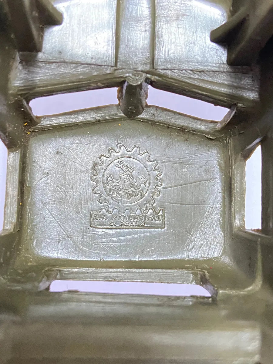 Miniatura original da marca Balila, fabricada em plástico rígido e com acabamento em verde militar, representando um caminhão militar equipado com um grande holofote giratório. Essa peça foi produzida no Brasil entre as décadas de 1960 e 1970 e se destaca pelo design robusto e pela raridade.