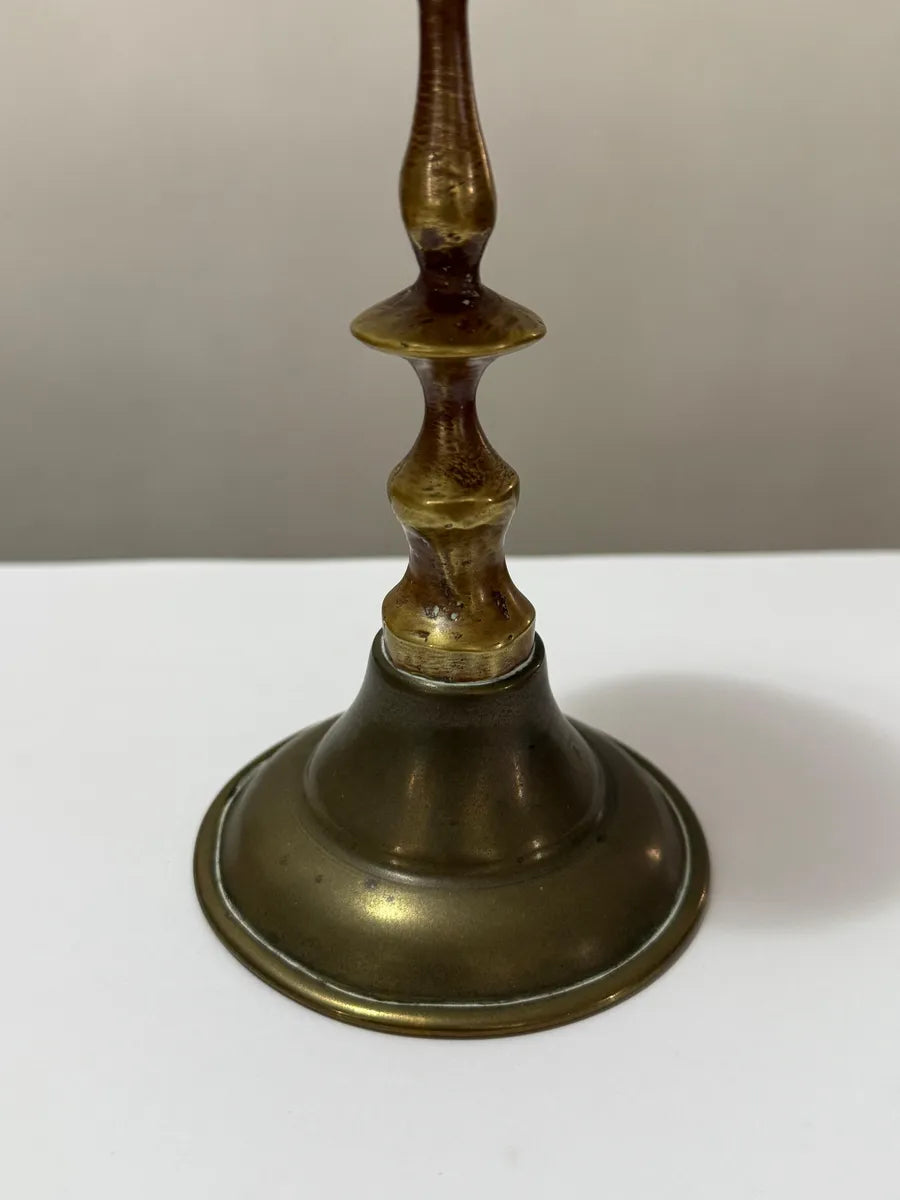 Antigo Castiçal Inglês Em Bronze/latão Século XIX
