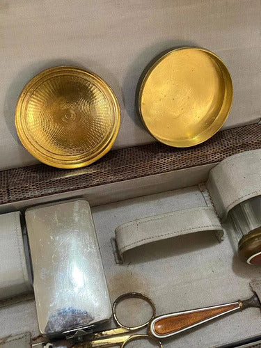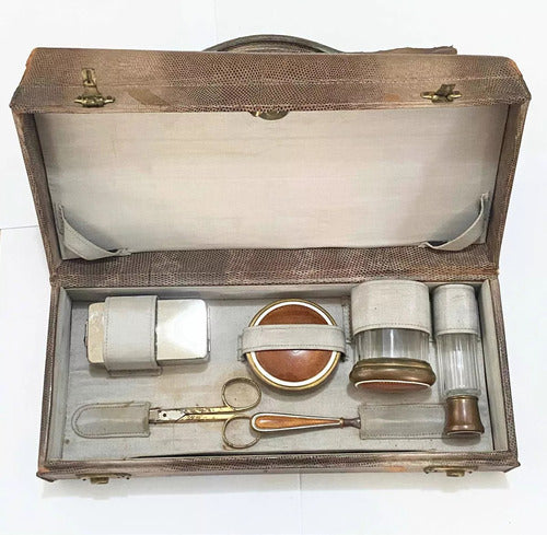 Antigo Conjunto Toucador Com Maleta De Couro Francesa Dec 30
