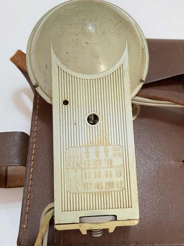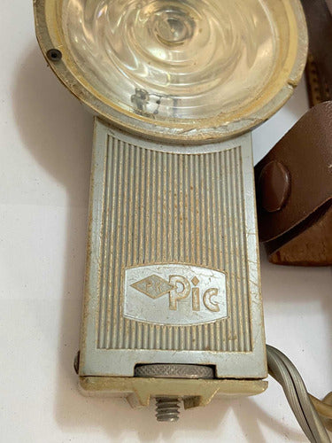 Raro flash fotográfico antigo PIC 1122, de origem alemã. Acompanha sua case original em couro sintético marrom, com alça e fechamento metálico.