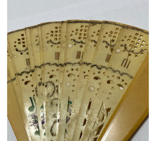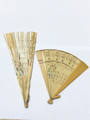 Antigo Leque Em Marfim Com Desenhos Lote