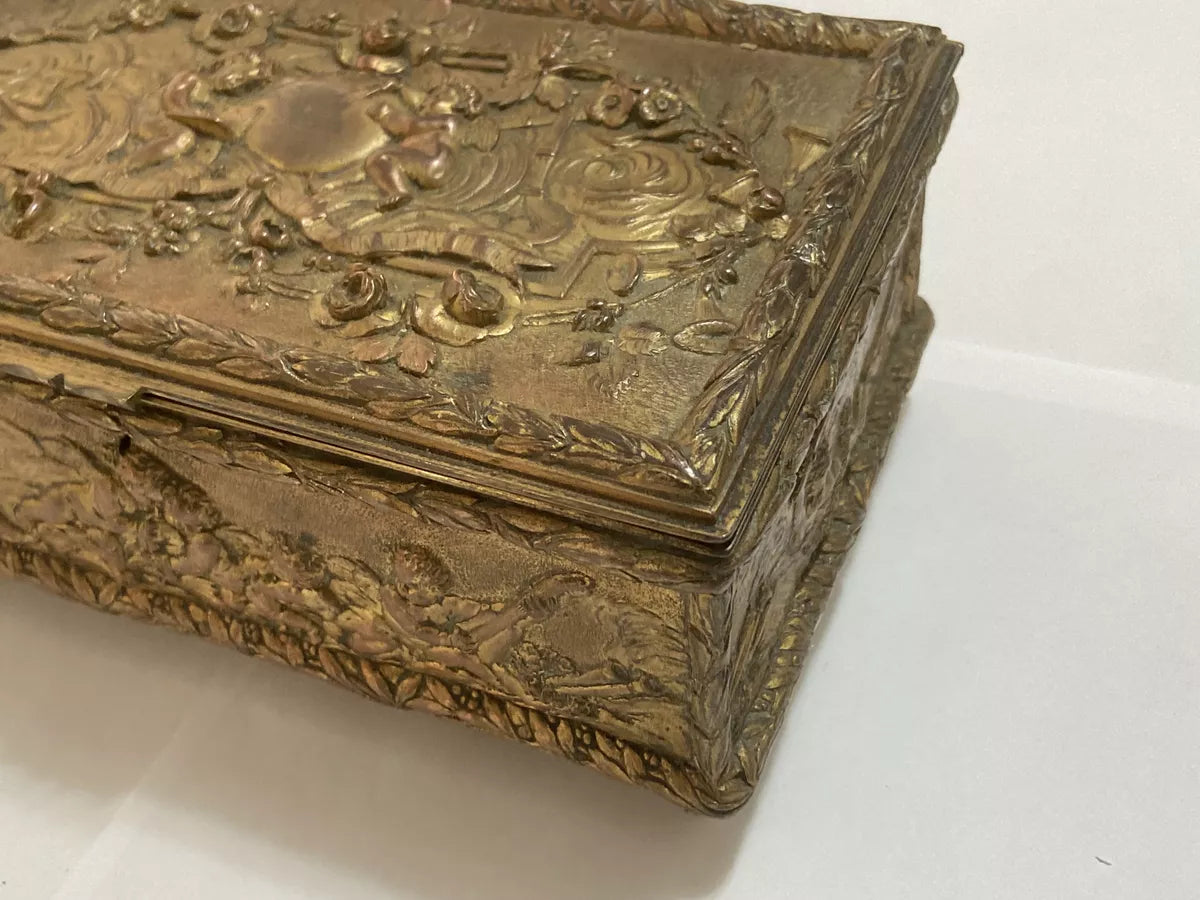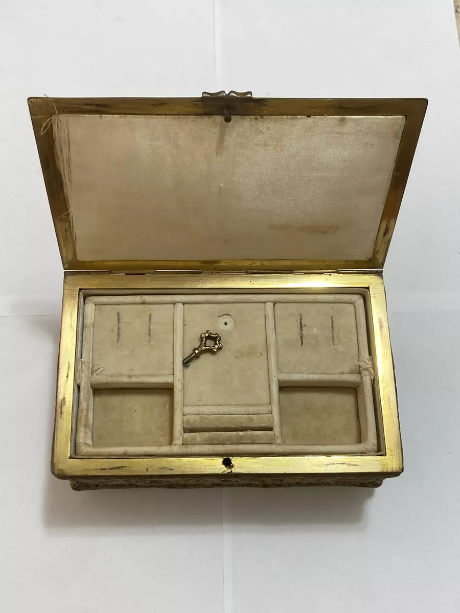 Antigo Porta Joias Caixa Cofre De Bronze Imperio Decorada