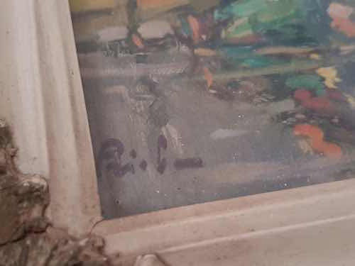 Antigo Quadro Pintura Óleo Paisagem Barco Assi Bela Moldura