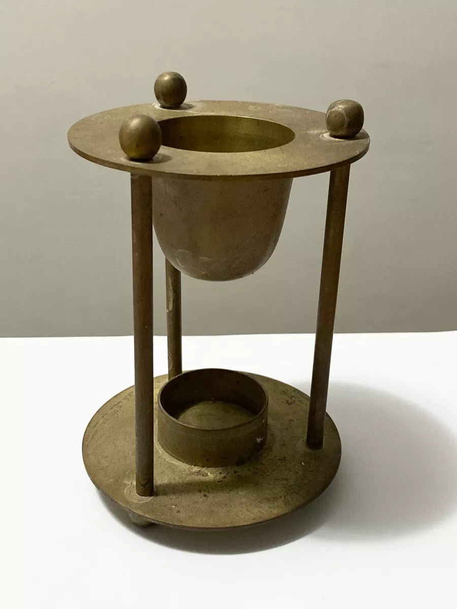 Antigo Raro Queimador De Óleo Essencial / Aquecedor Em Latão