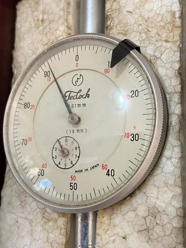Relógio comparador analógico da marca Teclock, fabricado no Japão. Item vintage de alta precisão.