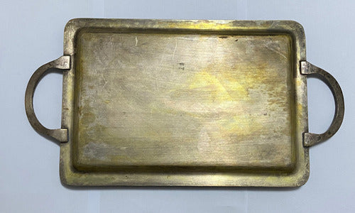Com alças laterais trabalhadas, a bandeja combina funcionalidade e sofisticação, sendo ideal para uso decorativo ou como item de coleção. Seu estilo remete ao design clássico de peças de prataria e metal do século XX, frequentemente utilizadas em eventos formais e recepções luxuosas.