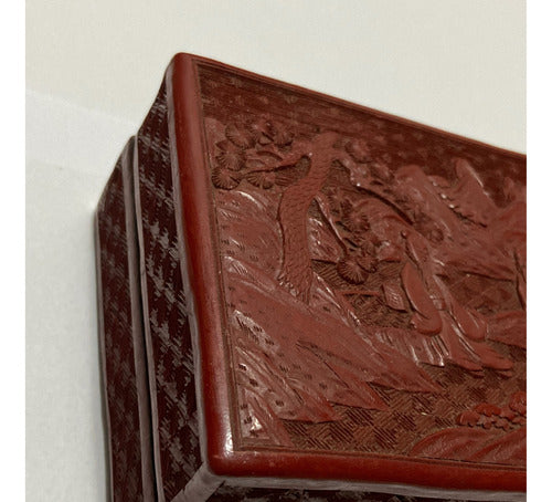 Caixa Antiga Porta Jóias Oriental Executada Em Laca Vermelha
