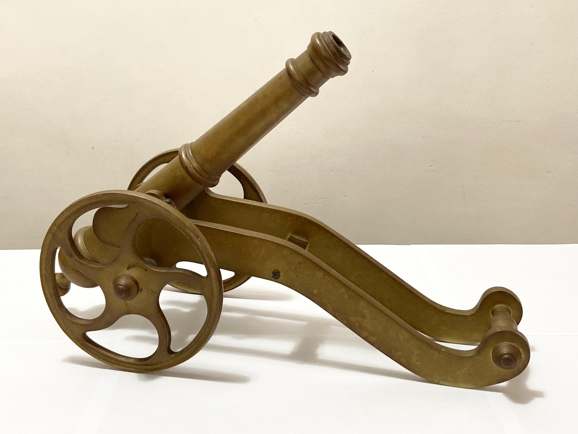 Com rodas e estrutura em bronze, apresenta excelente acabamento e pátina natural do tempo.