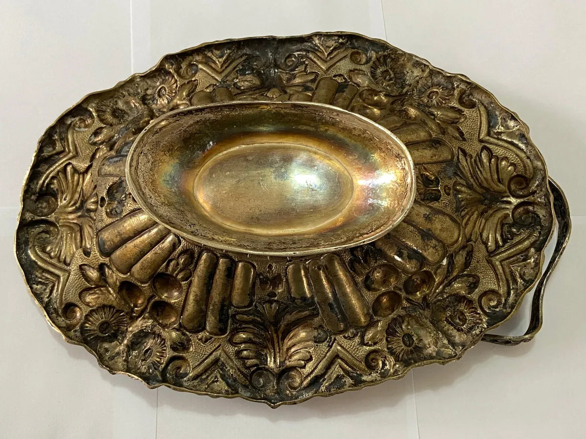 Cesta Fruteira Antiga em Prata portuguesa Contrastada Águia