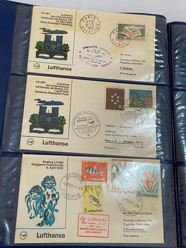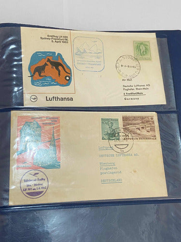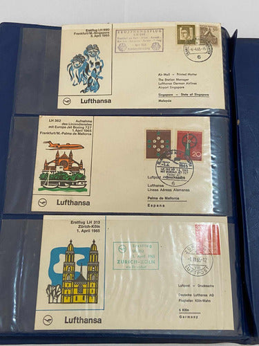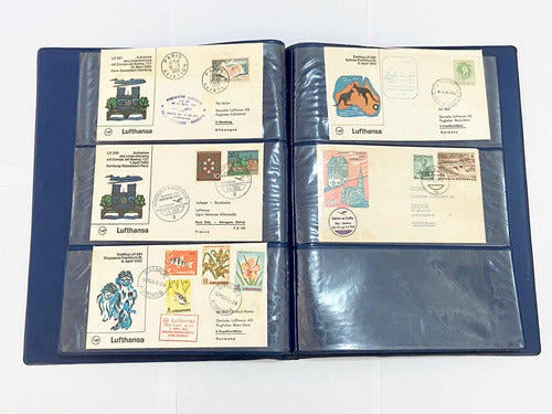 Coleção Cartões Postais Antigos Selos Lufthansa Avião