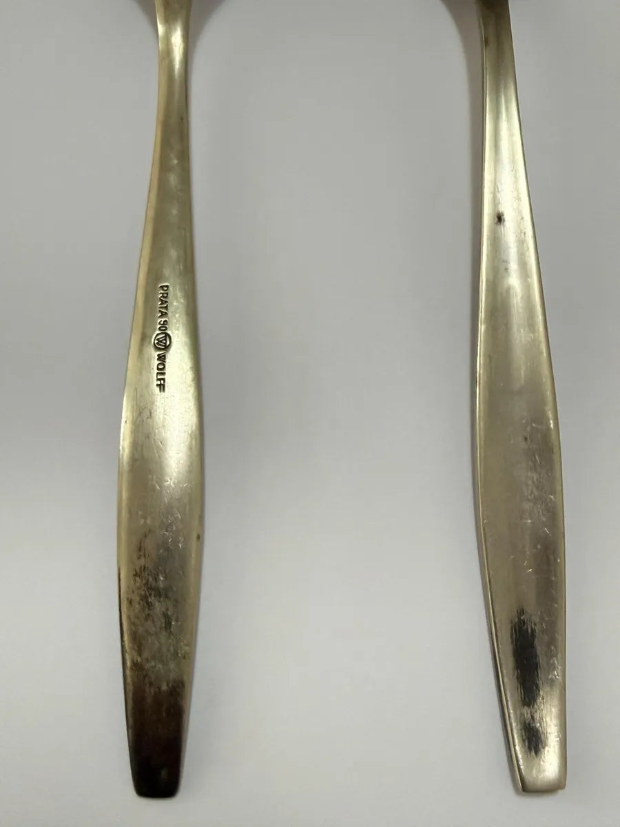 2 colheres antigas de servir, marca Wolff, fabricadas em Prata 90.