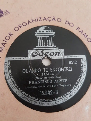 Raro disco de 78 rotações da gravadora Odeon, com músicas interpretadas por Francisco Alves, um dos maiores nomes da música brasileira.