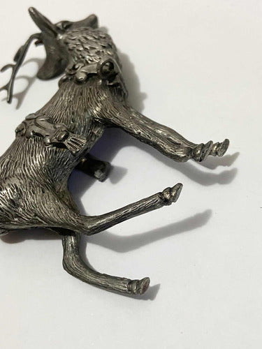 Escultura Antiga Alce Cervo Veado Rena Cor Prata