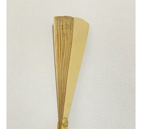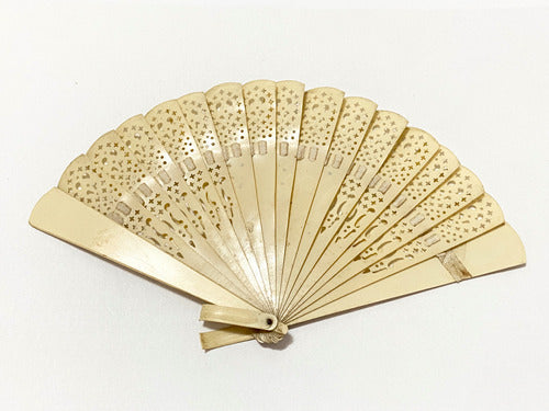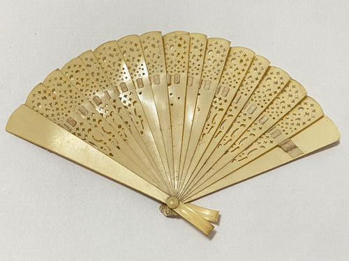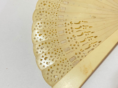 Leque Antigo Pequeno Com Desenhos Cor Marfim