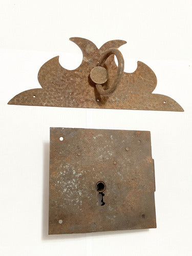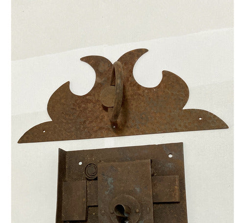 Lote Fechadura E Puxador Antigos Em Ferro Século Xviii - Xix