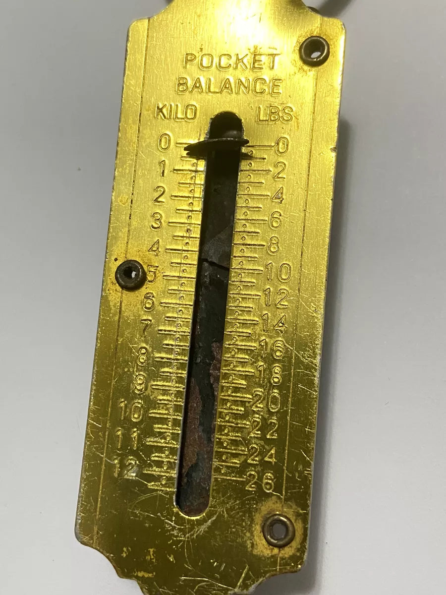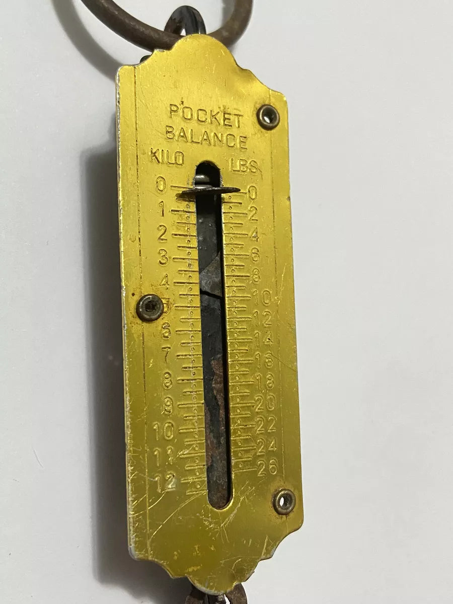Mini Balança Antiga Pocket Mecânica 12 Kg Gancho Dourada