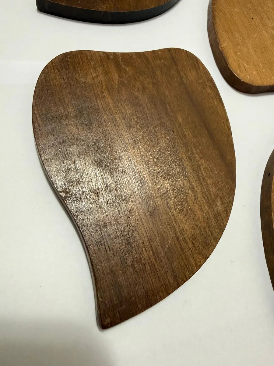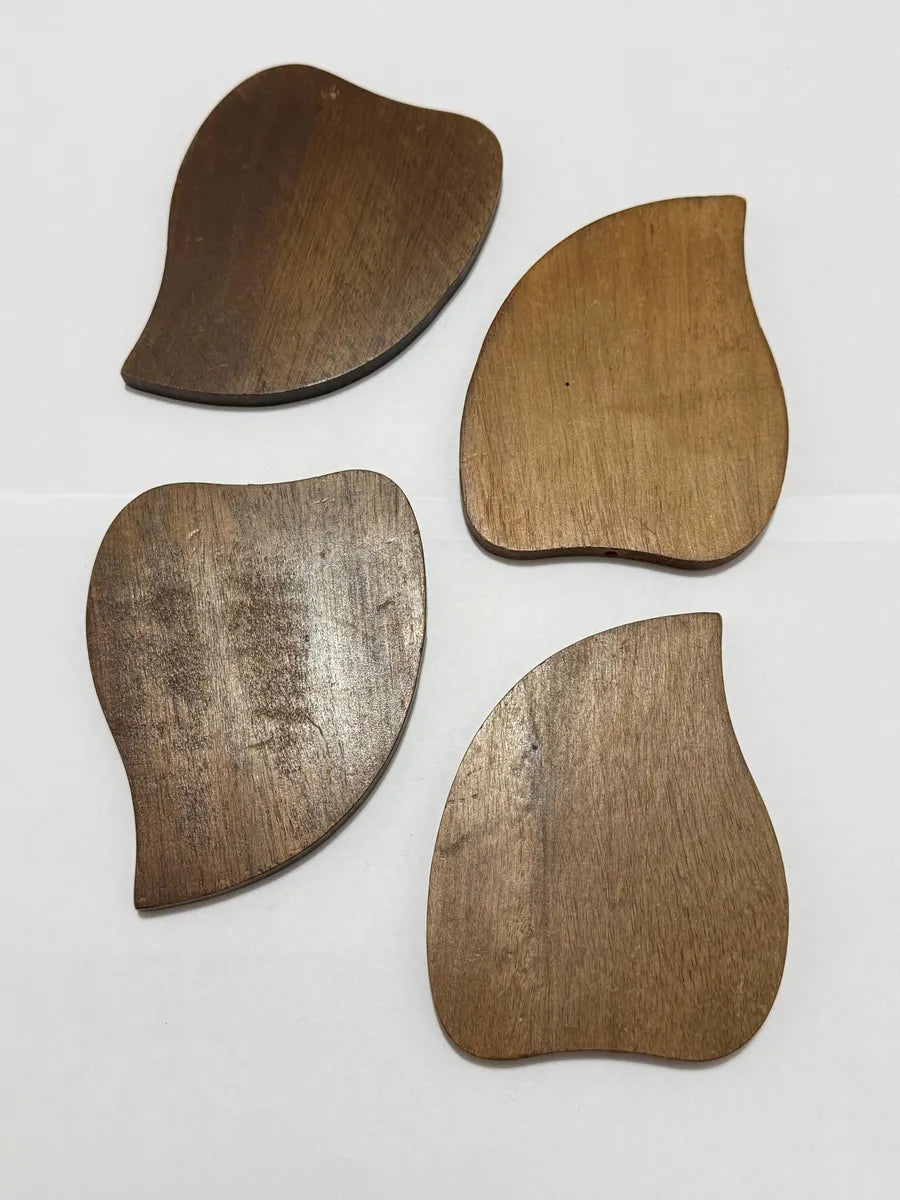Porta Copos Antigo Em Madeira E Cortiça - Jogo 4 Peças Formato Orgânico