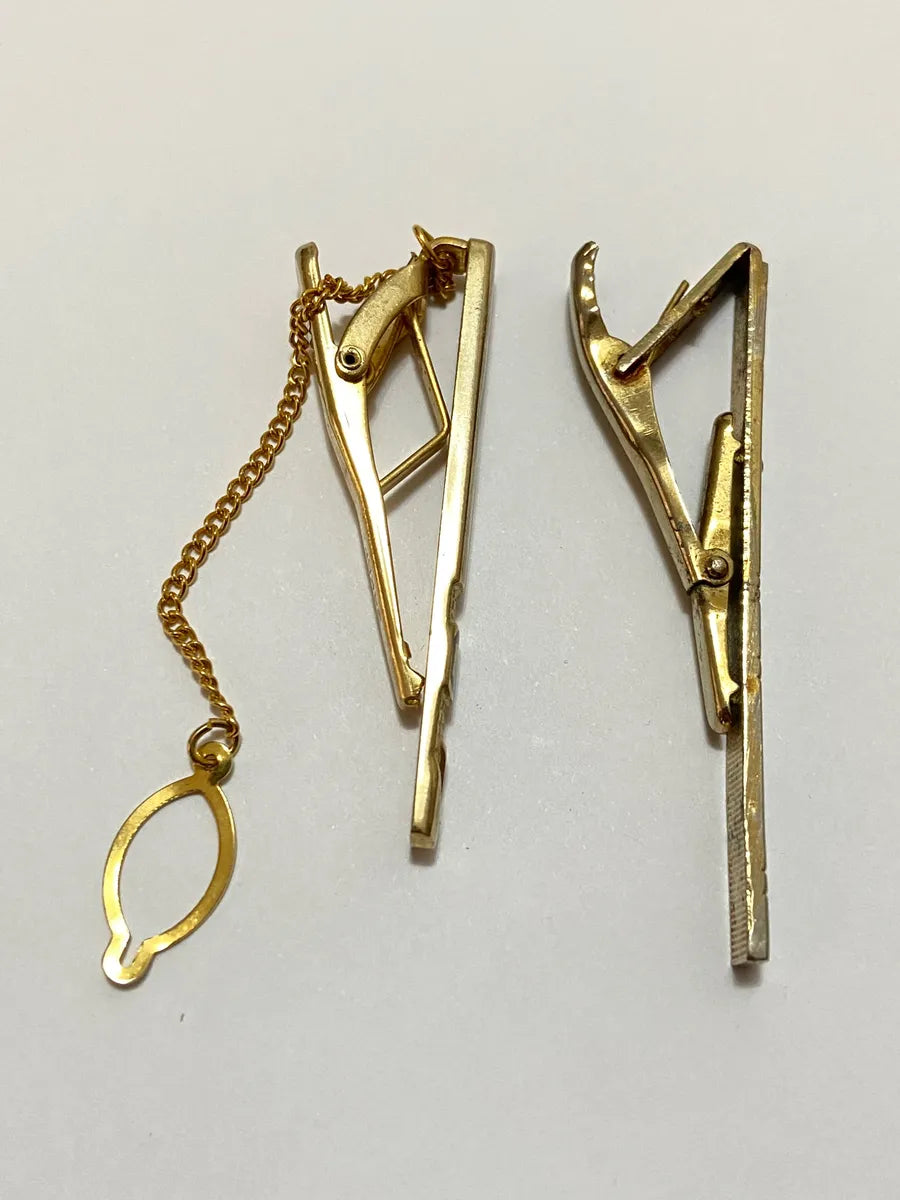 Prendedores De Gravata Antigos Dourado Banho Ouro 24k Dourado
