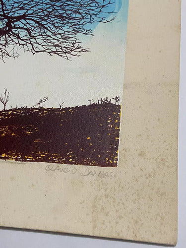 Quadro Gravura Antiga Arvore Assinada Claudio Dantas
