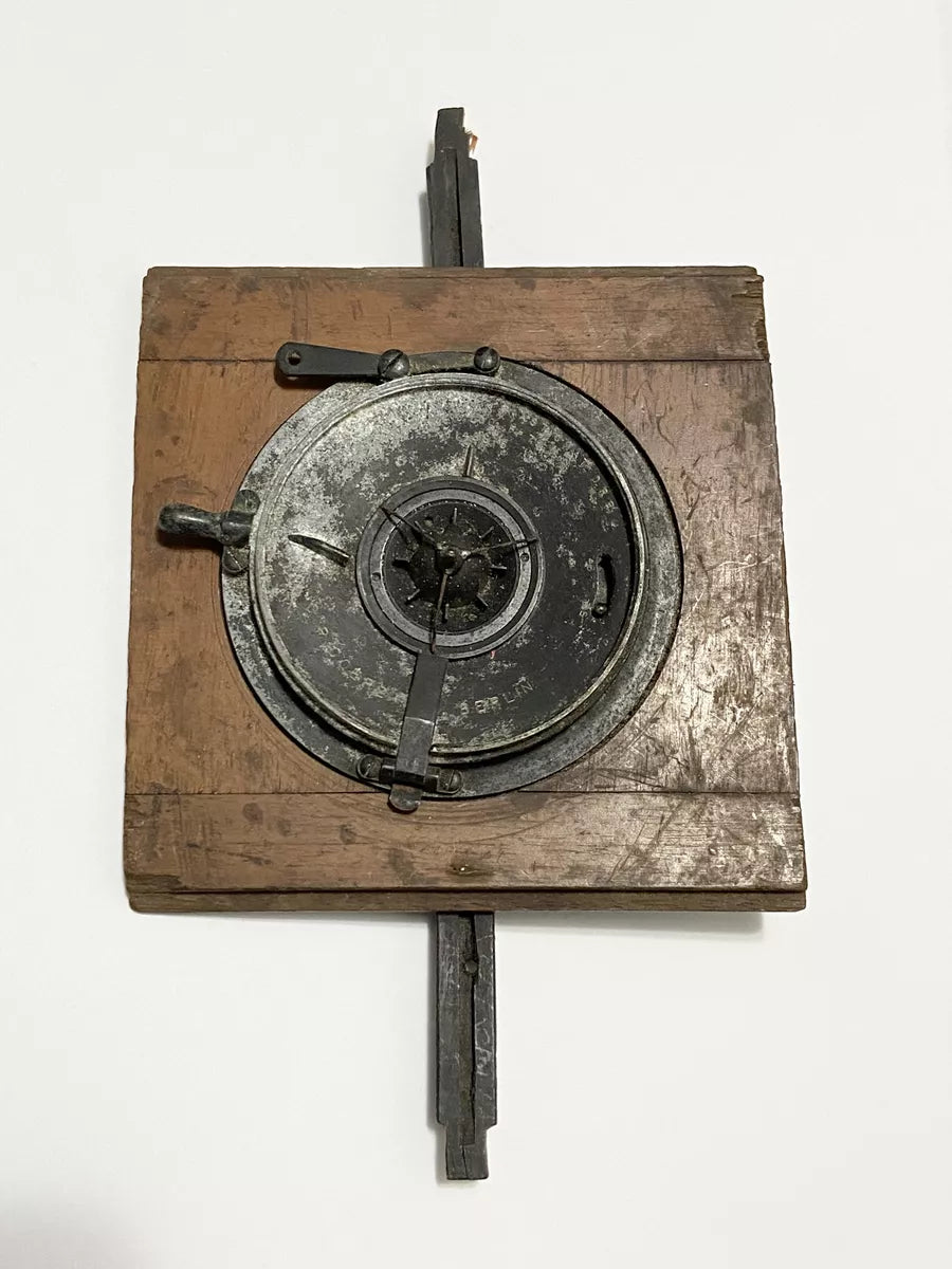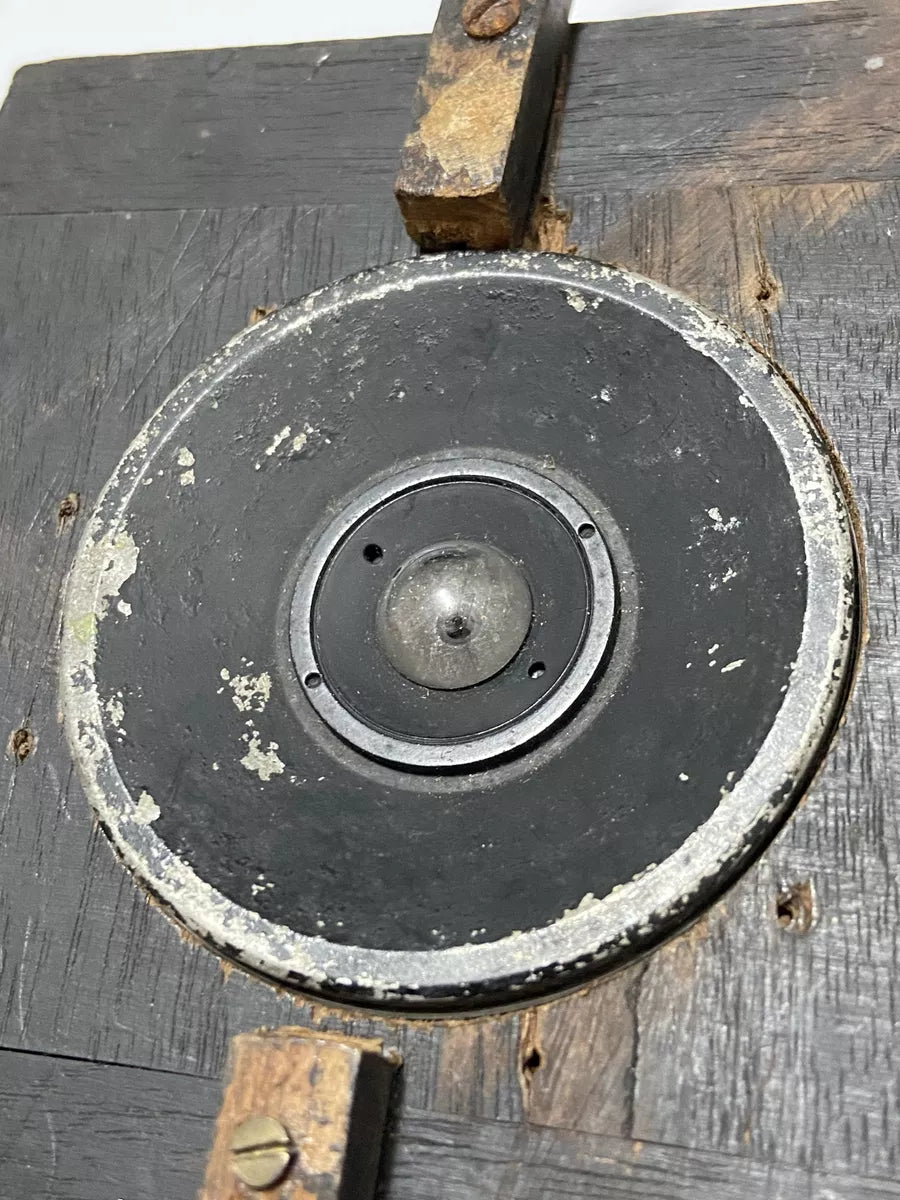 Apresentamos uma raríssima lente Hypergon CP Goerz Berlin, fabricada na virada do século XX, montada em painel de madeira original. Esta versão é a de 60mm, famosa por sua impressionante cobertura angular, utilizada em câmeras de grande formato para fotografia arquitetônica e científica.