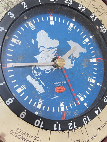 Relógio Antigo Livro World Globo Tochigi Token Japan Quartz