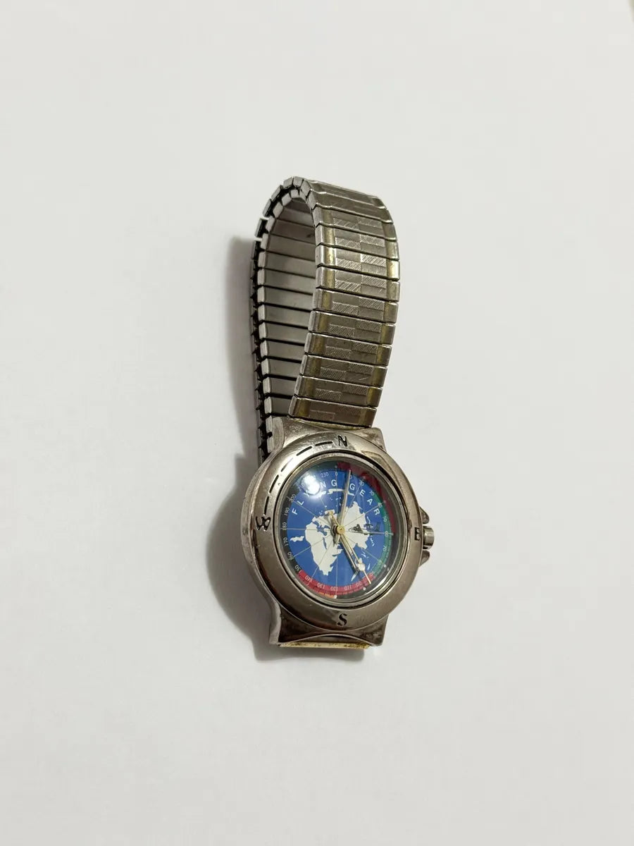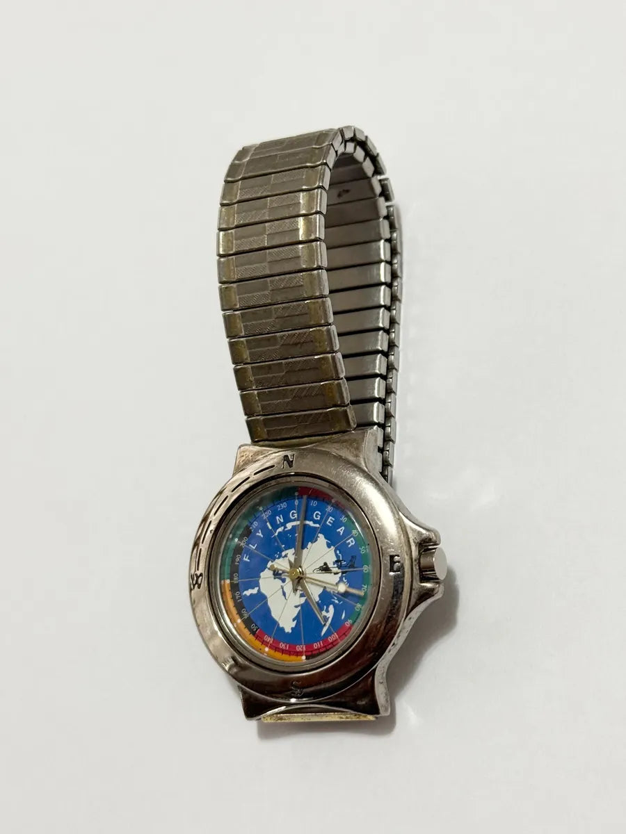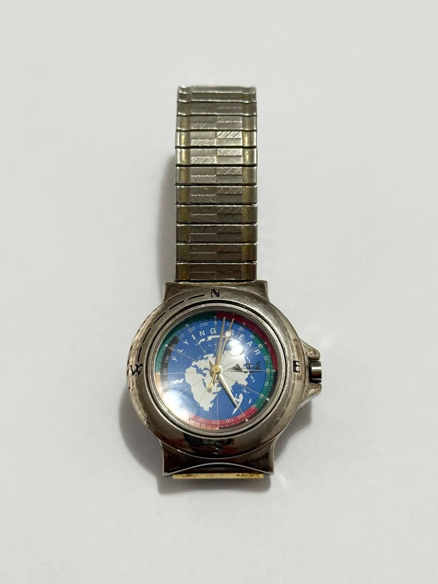 Relógio Antigo Mapa Mundial Flying Gear Japan Movt Prata