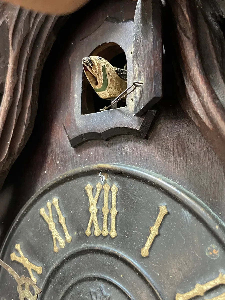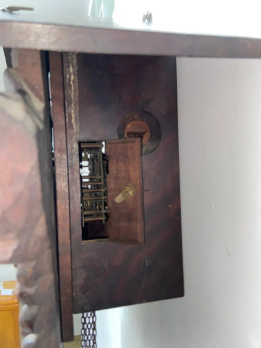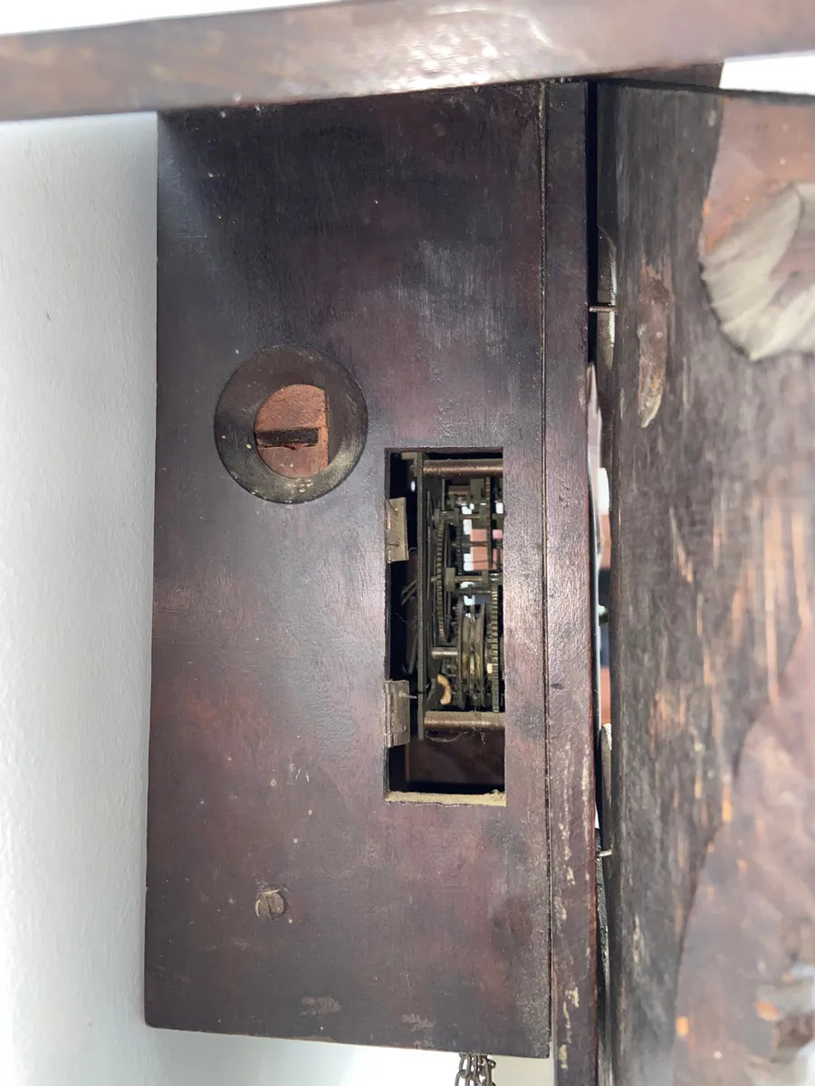Relógio Cuco Antigo De Parede Marca H Em Madeira Entalhada Marrom Marrom