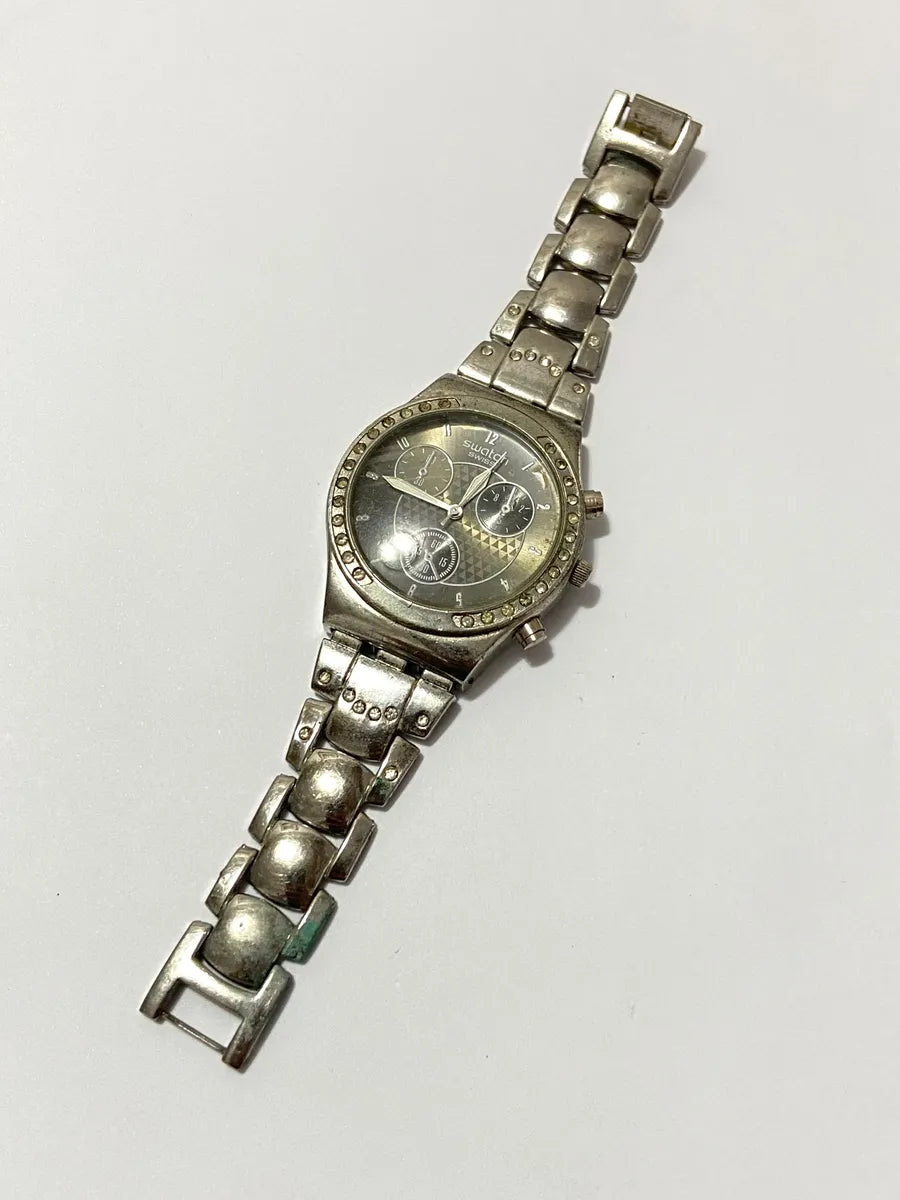 Relógio Swatch Swiss Suiço Antigo Com Cristais Prateado