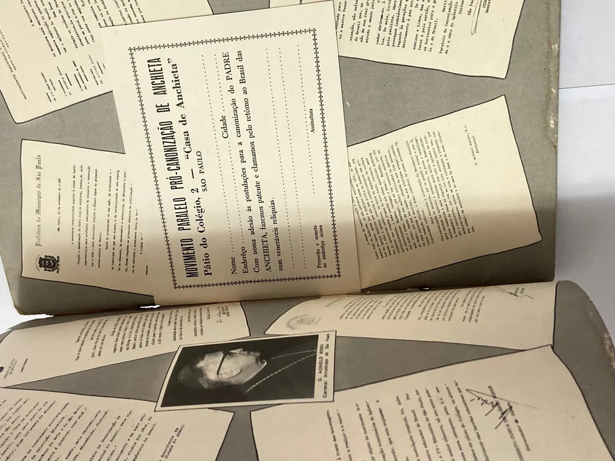 Revista antiga "Grandes Figuras em Quadrinhos – Anchieta, O Catequista das Selvas", edição especial dedicada ao padre José de Anchieta. A publicação foi produzida em apoio ao movimento paralelo pela canonização do missionário jesuíta. A obra é ricamente ilustrada em estilo HQ (história em quadrinhos), retratando passagens da vida e obra de Anchieta, figura central na catequização dos indígenas e formação cultural do Brasil colonial.