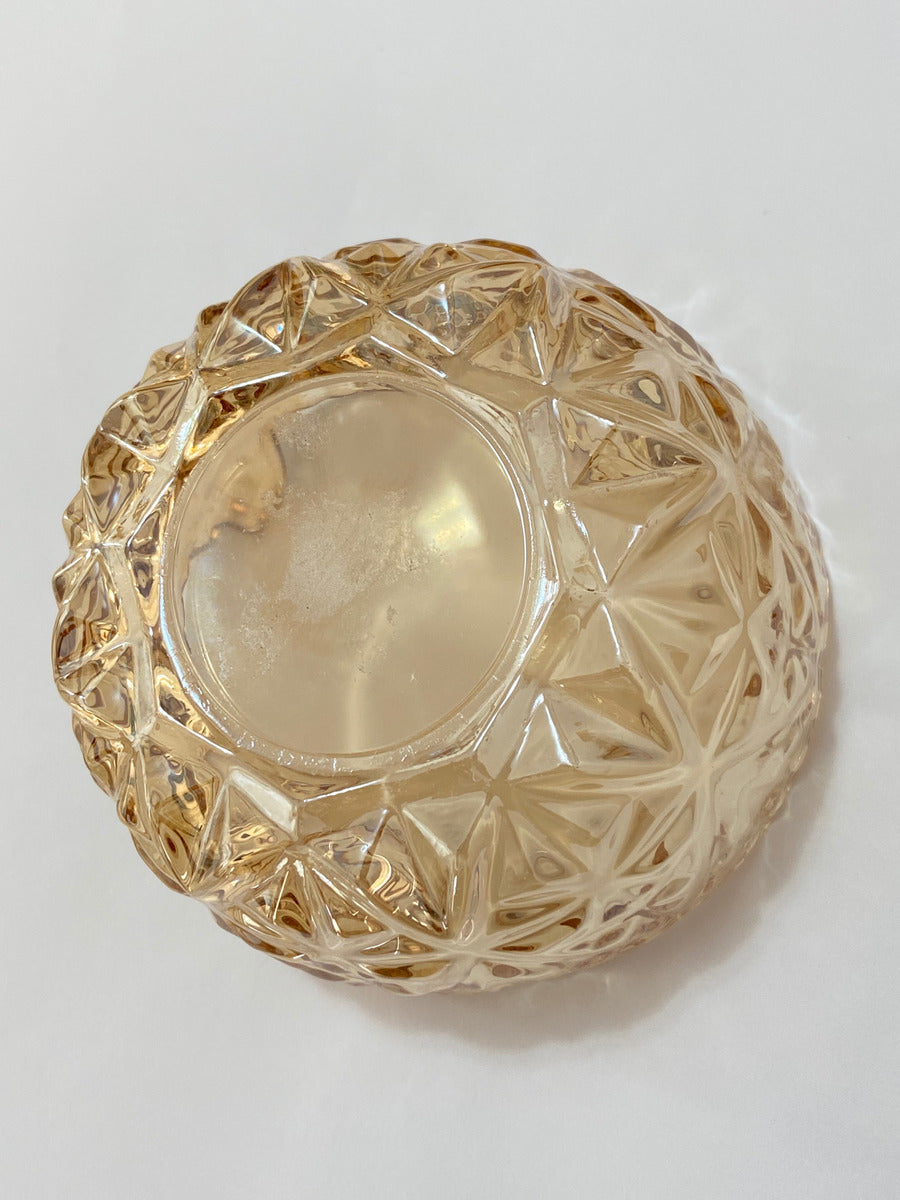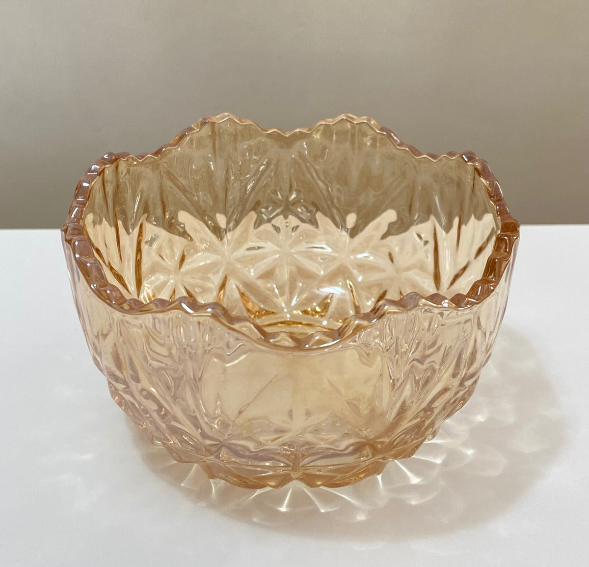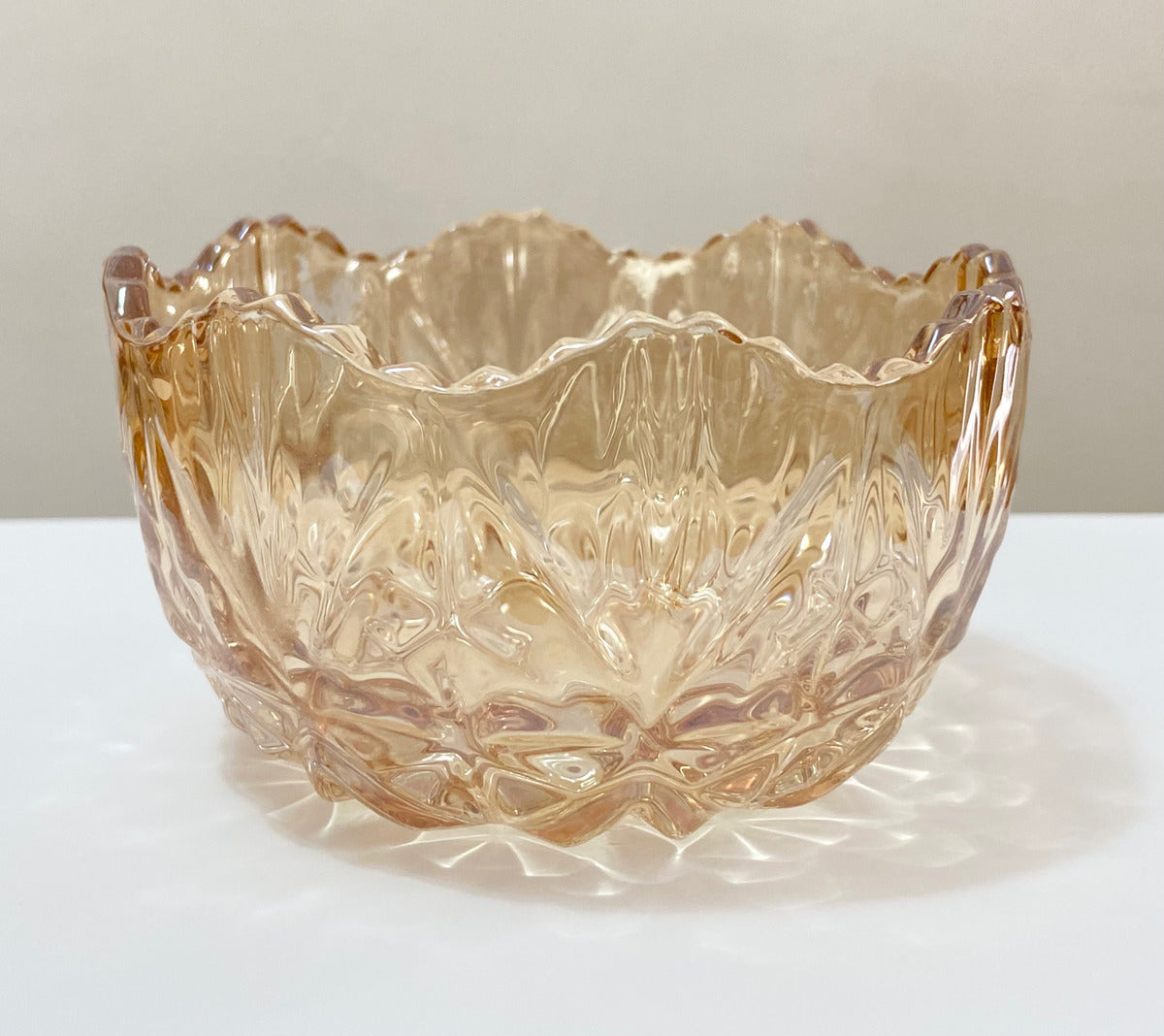 Tigela De Vidro Antiga Âmbar Com Relevo Âmbar
