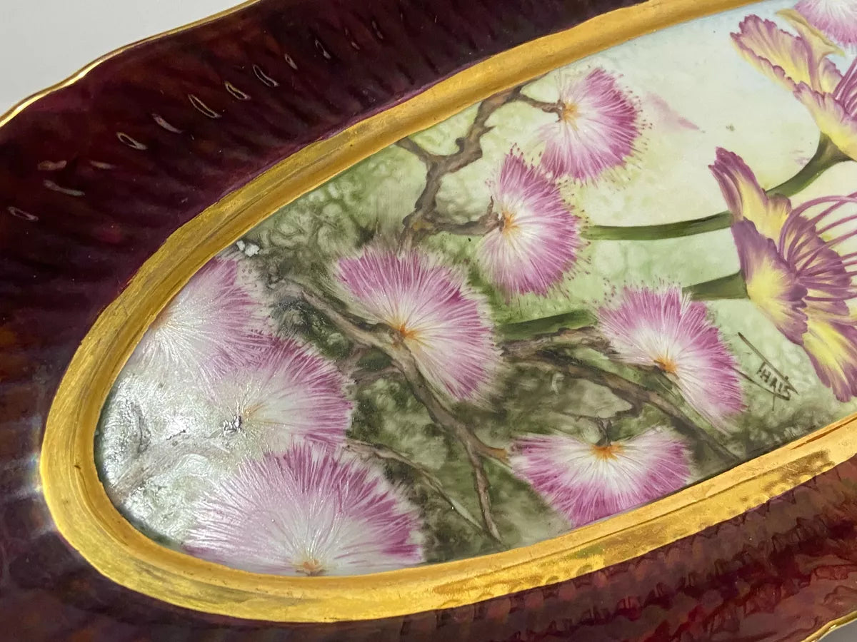 Travessa De Porcelana Antiga Florida Pintada À Mão Assinada